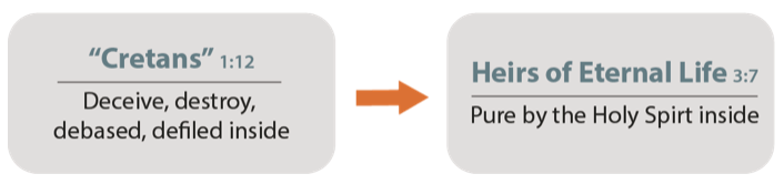 The appearing of the grace of God in Christ changes everything, a game changer, or rather, a life changer (2:11). The appearing of the kindness of God our Savior has saved us, giving the believer a whole new life through the Holy Spirit (3:4-5). God’s gospel gives eternal life to those who believe (1:2-3) – God’s very life within us. Therefore, our way of living should demonstrate godliness consistent with this wonderful reality (1:1). We should act very differently than we did before God’s love appeared to us (3:4-8). Those in Crete once behaved like everyone around them; as “Cretans,” their defiled nature was evident in everything they did. Having been saved, they now had the Holy Spirit within them. They were no longer the same people, so there should now be a noticeable change in their conduct.